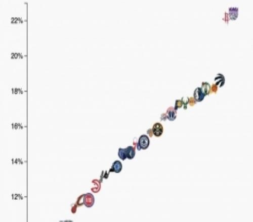 【一圖流】本賽季中投占比:國(guó)王火箭獨(dú)一檔&湖凱也挺高公牛僅6%