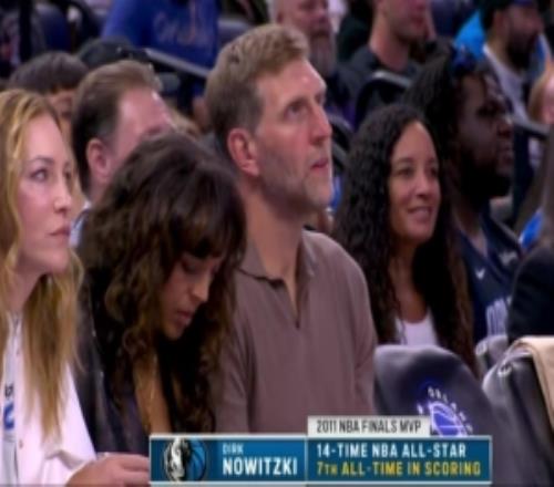 德國(guó)元素拉滿!今日湖人VS魔術(shù)比賽獨(dú)行俠名宿諾維茨基現(xiàn)場(chǎng)觀戰(zhàn)
