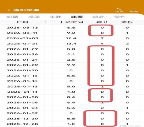 值得一提的是,輸給遼寧隊(duì)一役,山西隊(duì)后衛(wèi)陳彭宇迪出場7分鐘,數(shù)據(jù)為0分0板1助1失誤,外加5次犯滿畢業(yè)。而這樣的表現(xiàn),只不過是陳彭宇迪整個賽季,糟糕表現(xiàn)的一個縮影。這個賽季,陳彭宇迪共代表球隊(duì)出戰(zhàn)了20場比賽,其中,1場比賽為0分。