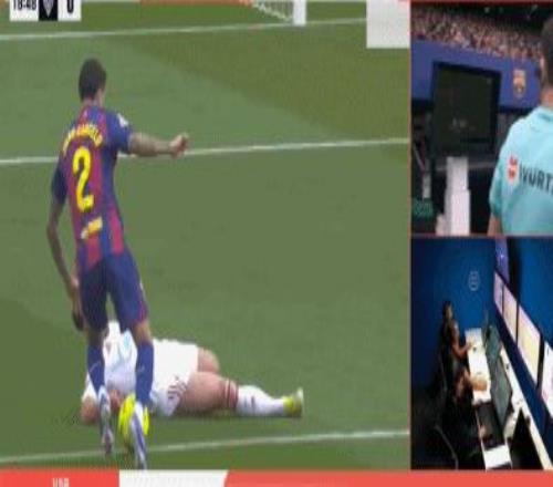 第18分鐘,坎塞洛禁區(qū)內(nèi)變向過人,擊中何塞-安赫爾的手臂,裁判回看VAR再度判罰點(diǎn)球。